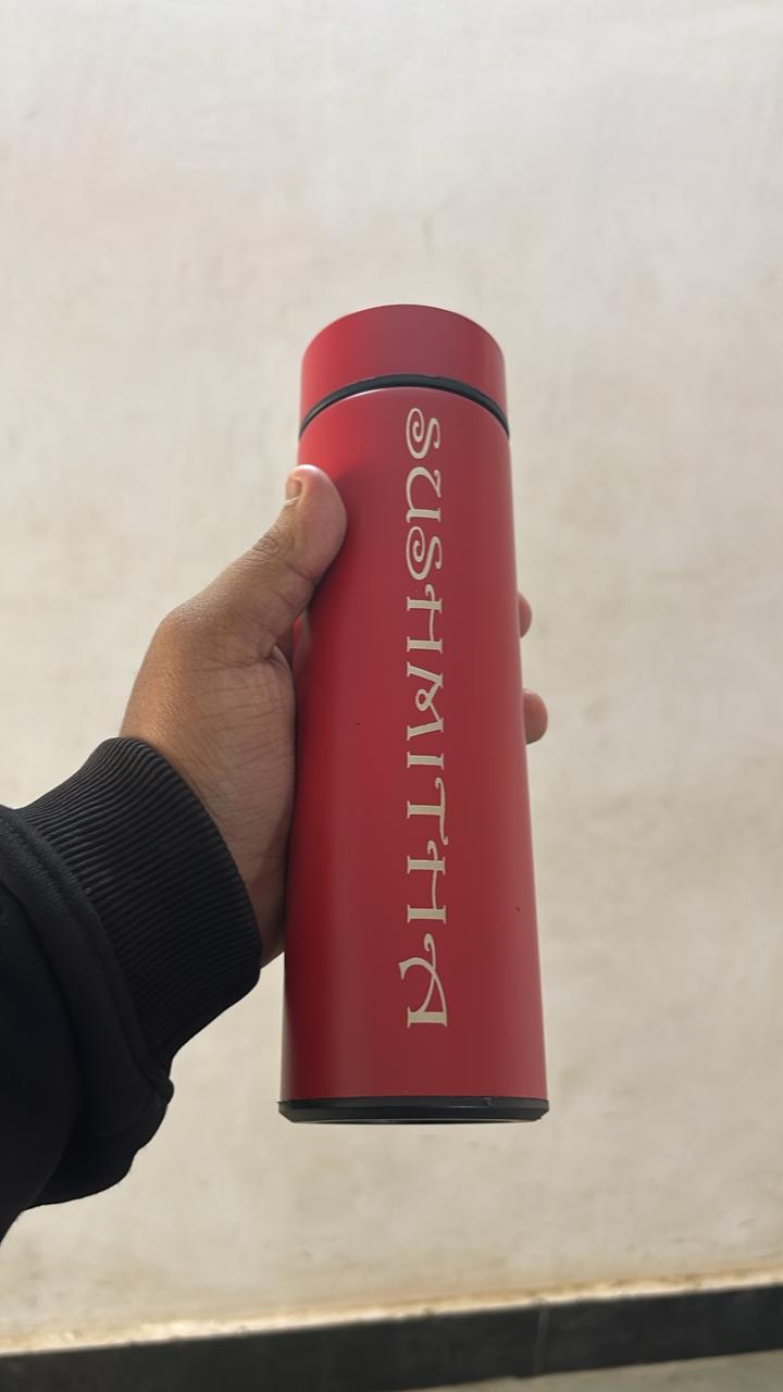 A stylish Customised LED Bottle with Name Engraving designed to make your gift unique and memorable. The premium matte black bottle features elegant LED lighting and personalized name engraving, making it perfect for birthdays, special occasions, and everyday use.