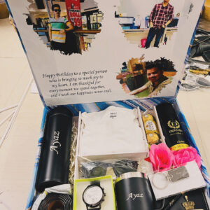 Celebrate special moments with this luxury personalized birthday hamper, beautifully packed in an elegant white gift box. This hamper combines stylish accessories, premium essentials, chocolates, and personalized items to create a memorable and thoughtful gift.